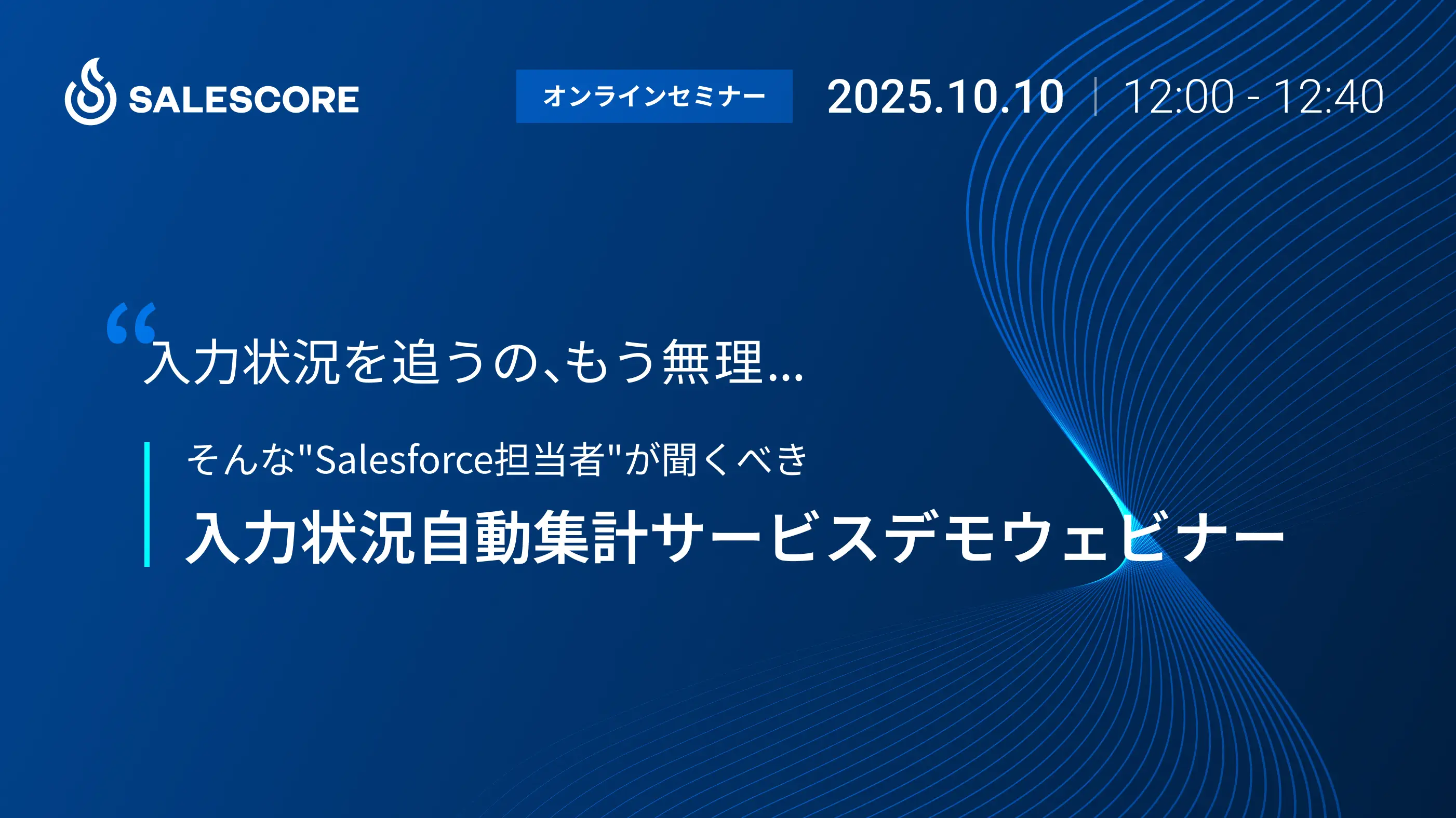 終了「入力状況を追うの、もう無理」 そんな"Salesforce担当者"が聞くべき 入力状況自動集計サービスデモウェビナー定員数:100 | 金額:無料