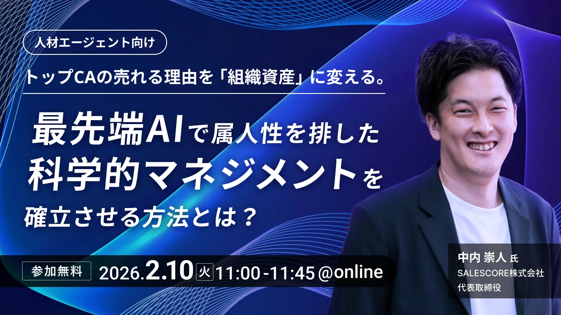 受付中【人材エージェントの方必見!】トップCAに属人化しない科学的マネジメントの方法論定員数:100 | 金額:無料